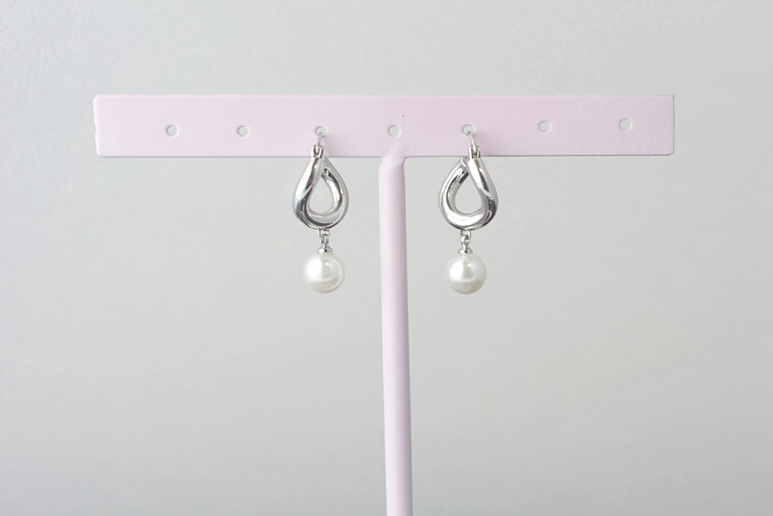 Cute, understated, and thoughtfully designed, these anti-tarnish 925 silver plated distorted hoops earrings with pearl drop are for those who like their jewelry to be elegant but not ordinary.