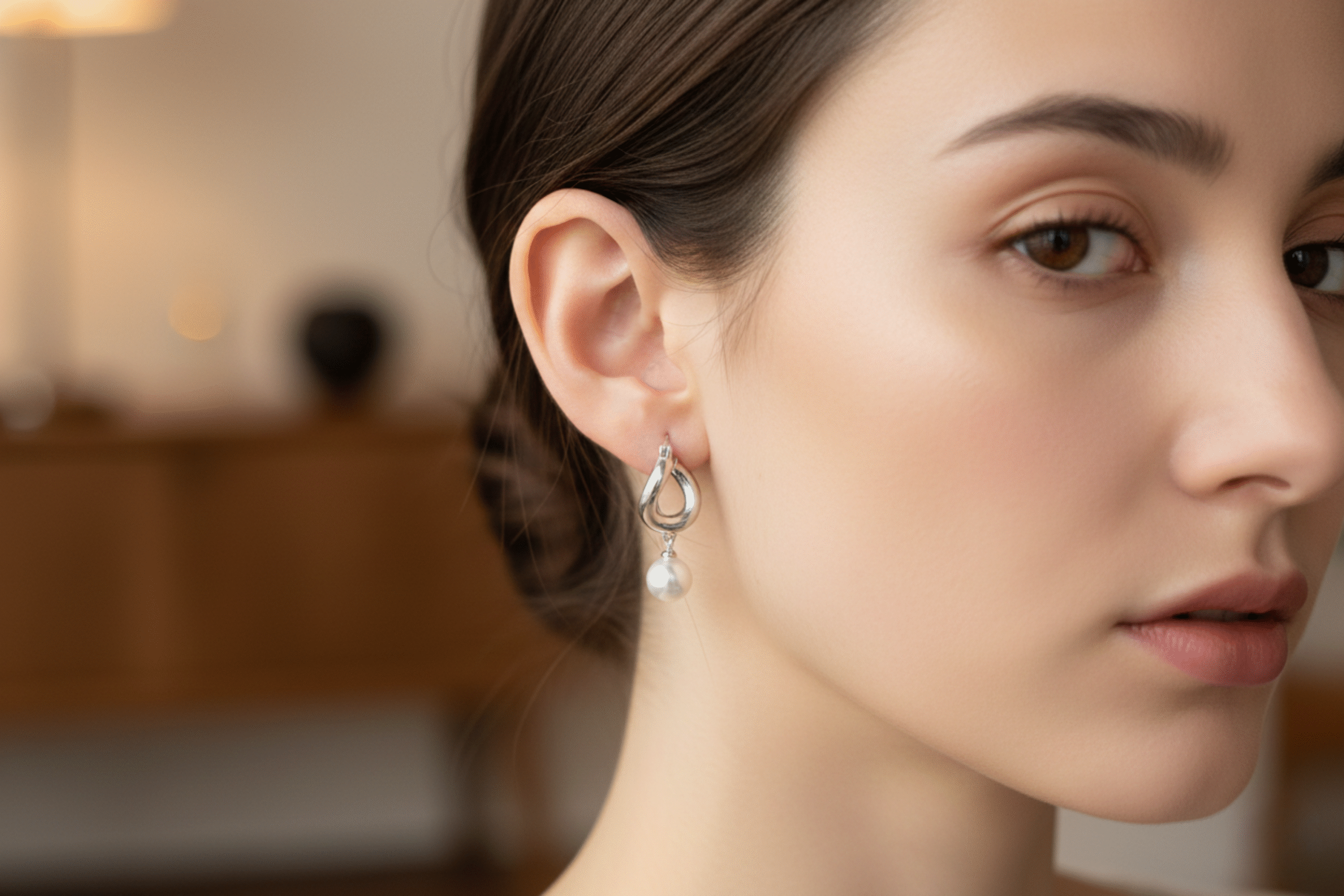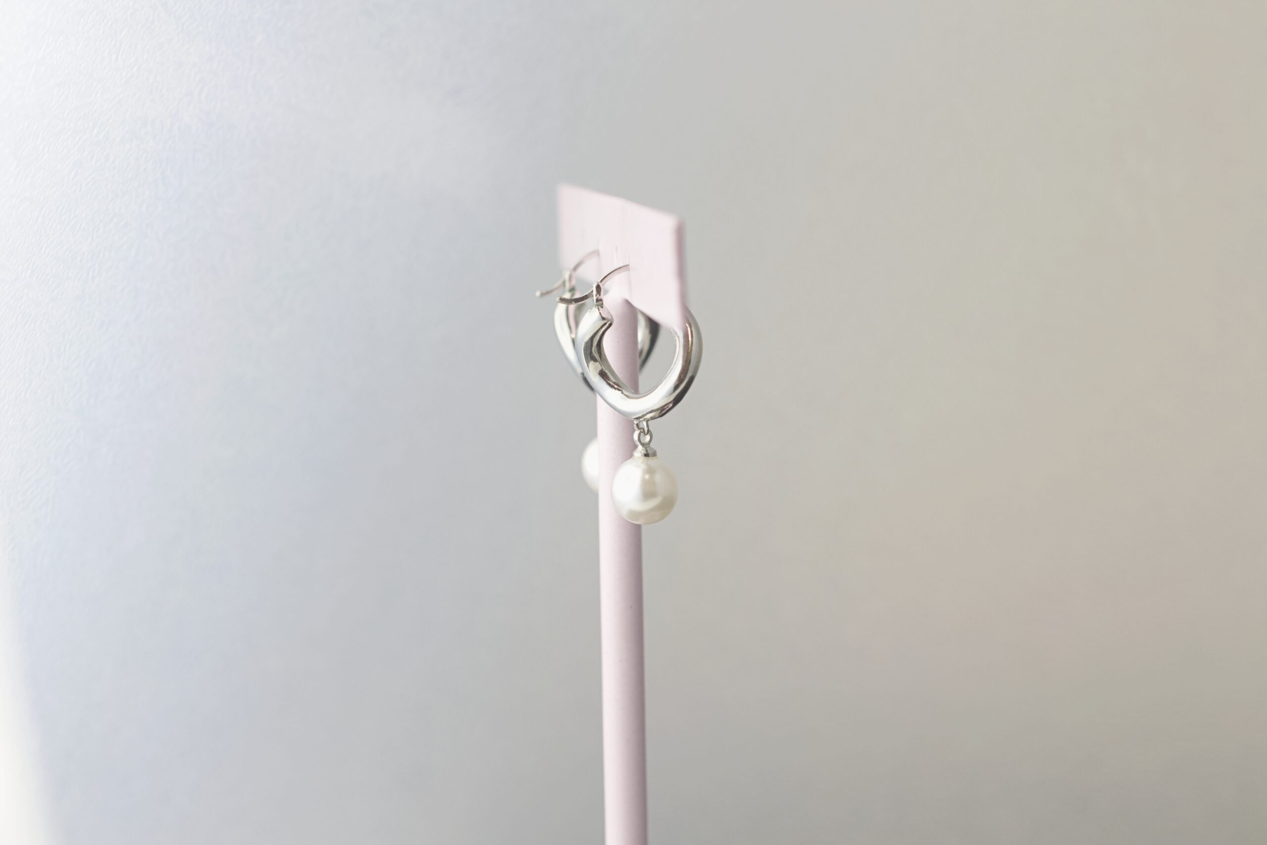 Anti-tarnish, 925 silver plated, distorted hoops, earrings with pearl drop that feel refreshingly different from your everyday hoops. These earrings are designed to be subtle yet unique, with a softly distorted hoop silhouette that sets them apart from the usual circular styles.