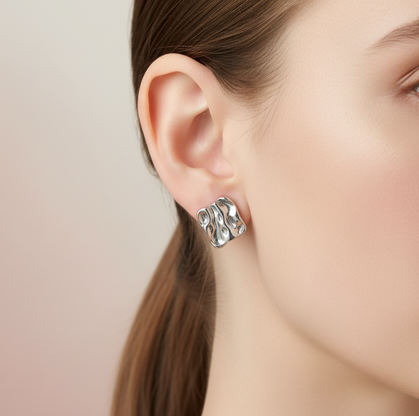 With a molten-metal inspired finish, these silver studs bring a soft, fluid texture to your everyday look. They’re artsy, minimal, and add an effortless touch of style.