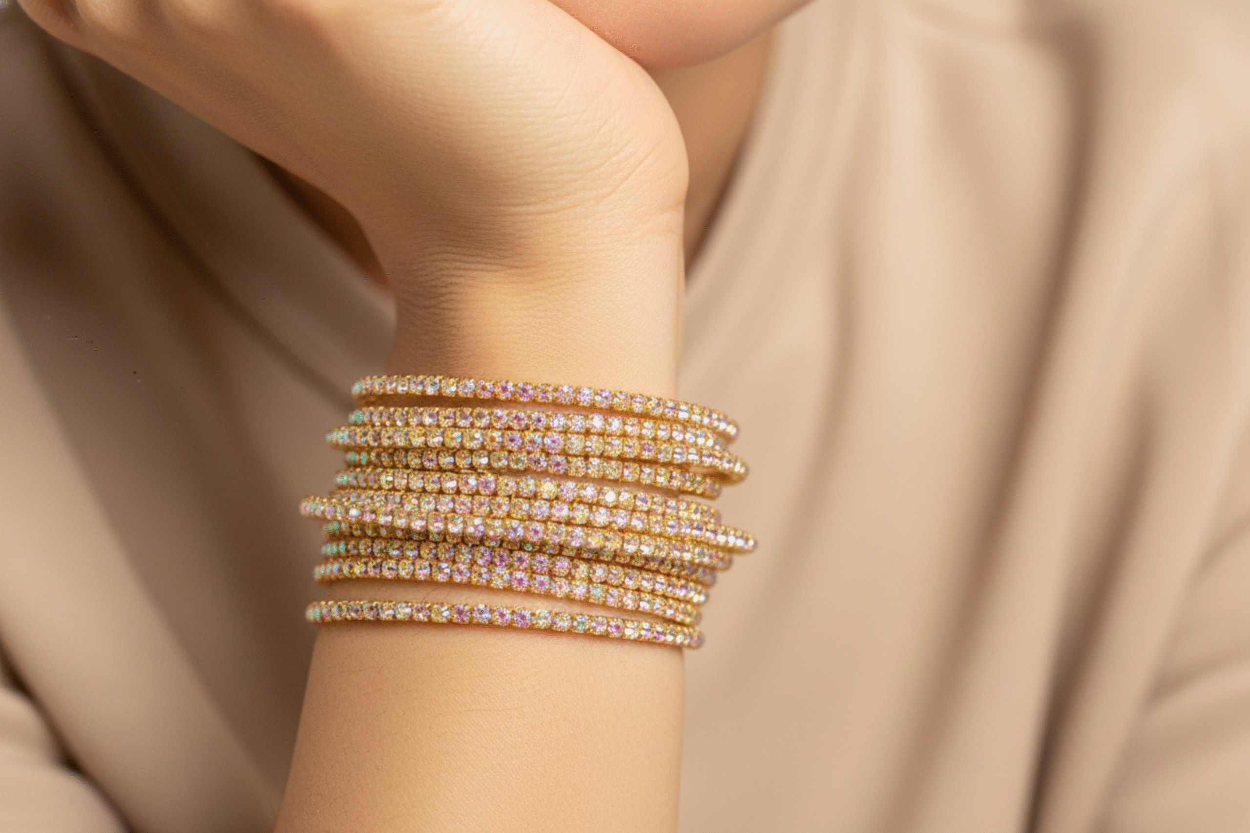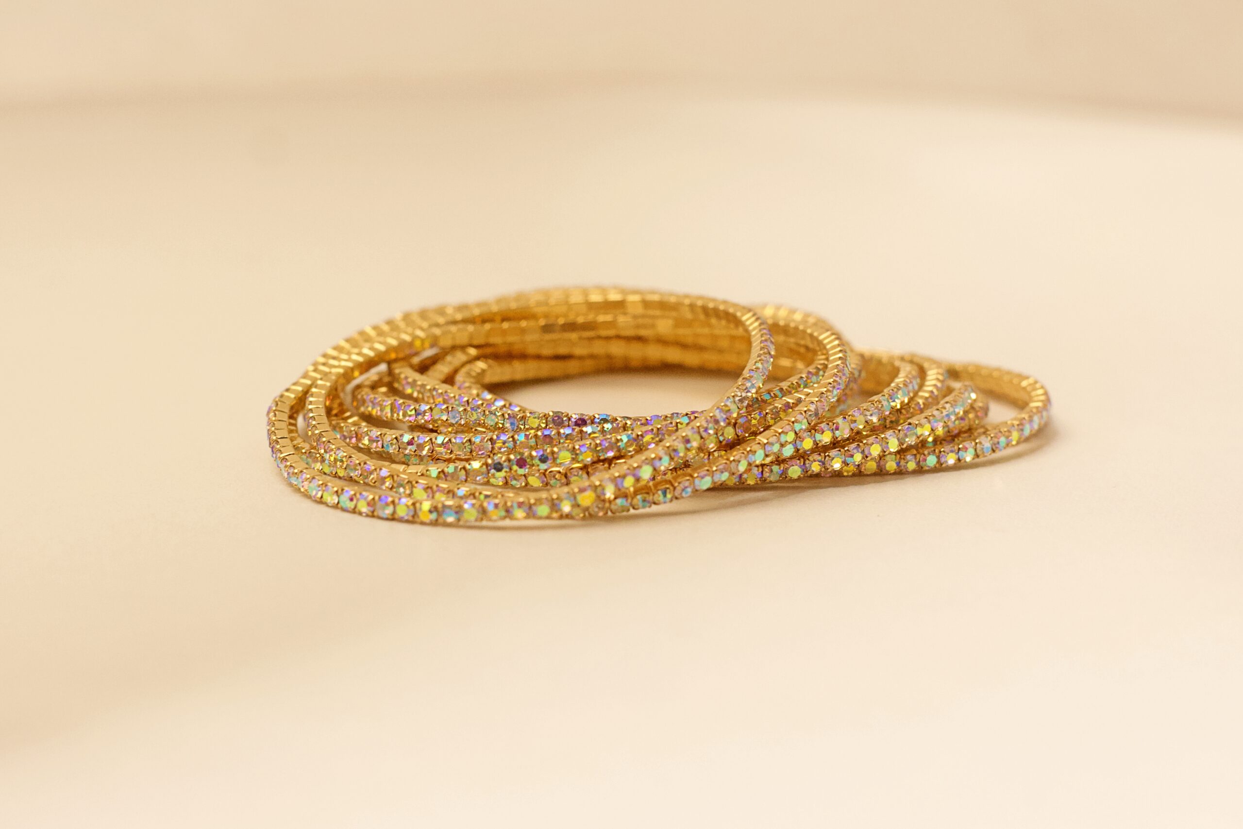 These are made of premium quality stainless steel and that means no risk of allergy, tarnish or dullness! These anti-tarnish reflective gold stretchable bracelet bands are a dash of bling that you truly need in your jewelry collection!