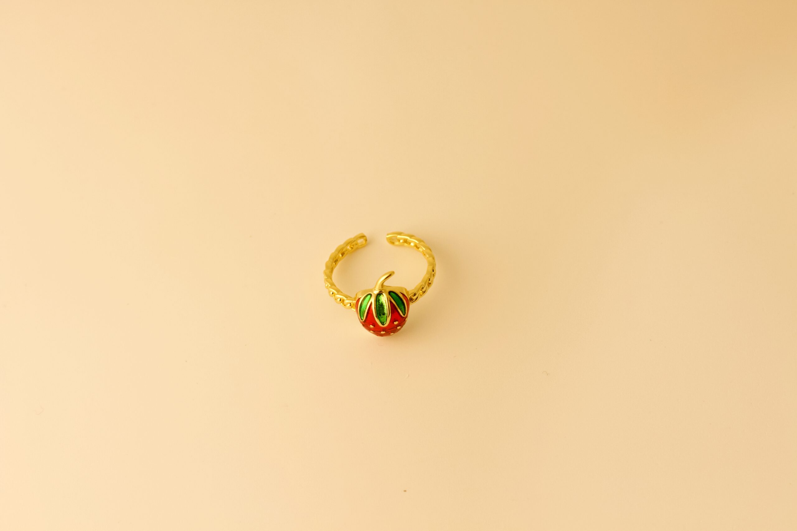 Sweet, sassy, and straight out of your summer dreams. This strawberry adjustable ring adds a dash of color and playfulness to your look. It’s the perfect mood-lifting piece for your jewelry box — cute, quirky, and so you! Product Details: Material: Stainless steel with enamel strawberry charm Adjustable fit for all finger sizes Band width: 0.3 cm Strawberry length: 1.5 cm Weight: 1 g Finish: Glossy gold with red detailing 🍓